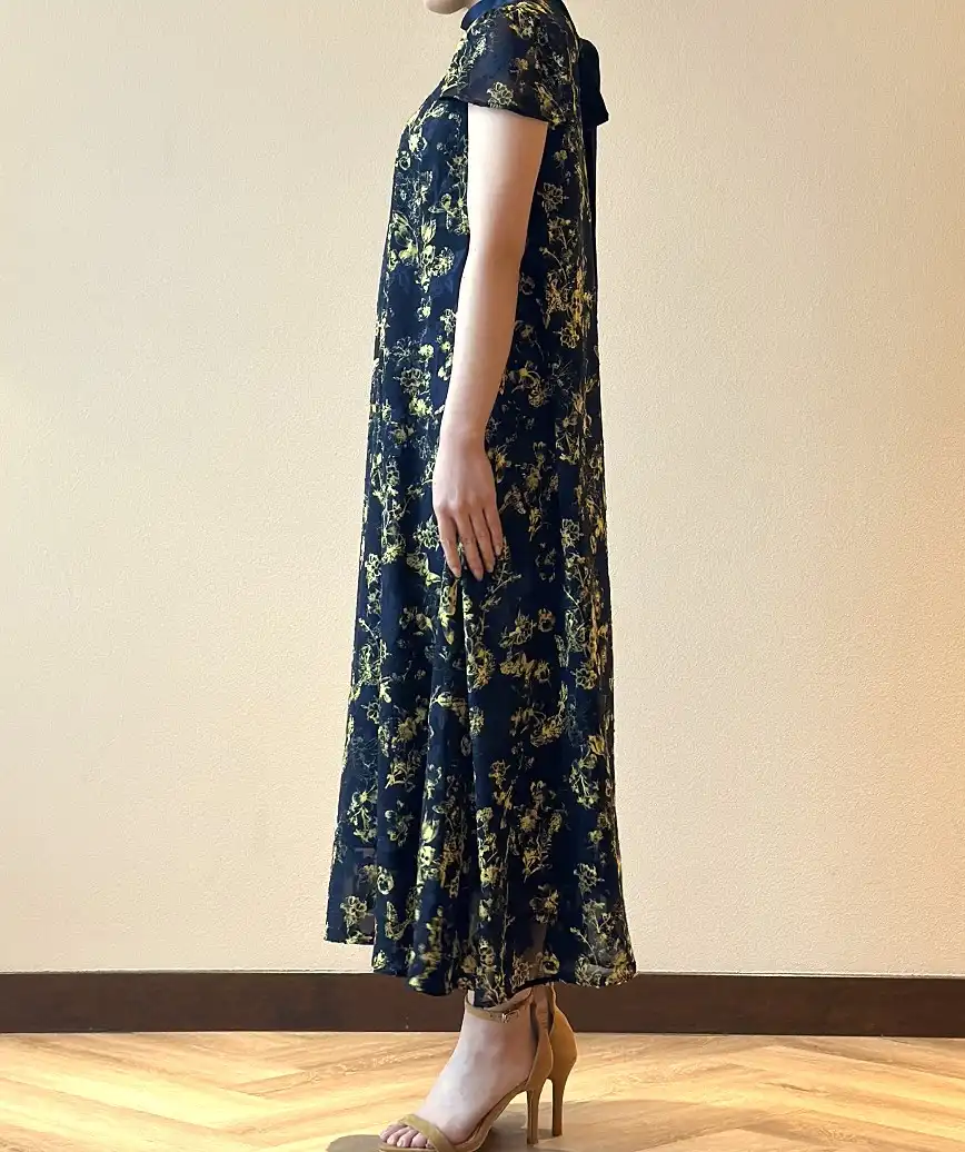 OGフラワーシフォンテントラインドレス-ネイビー-Fサイズ