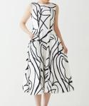 ホワイト×ブラックのパターンが華やかな一着。大き目のポケットが印象的で。ネックラインはクルーネックながらバックラインではVにざっくりと開くバランスが絶妙なドレスです。※海外商品のためドレスに記載されているサイズと異なる場合があります。