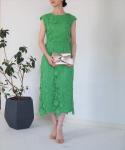シンプルなAラインに繊細なレースが優しい印象に。バッグをデザイン性の高いカラーバッグなどを合わせても!