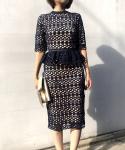 クール派のレースドレスは大柄の総レース。透け感もでながら肌にのせたようなレースデザインが大人女性にピッタリの一着。