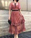レースドレスを着用する際に気を付けたいのは、生地に伸縮性がないため飲食を伴うパーティや結婚式への参列の場合、ウエストサイズはしっかりと確認することがおすすめ!立っている状態でウエストがぴったりだと着席して食べ始めたら苦しくておいしいお食事が入らない!なんてことも。レースドレスに関してはゆとりをもったサイズをセレクトすることをおすすめしています♪