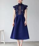 上半身だけでも華やかなドレス。カラーはネイビーで落ち着いていますが、ハイネックのレースデザインが可愛く、まとめ髪にもぴったりのデザインです。