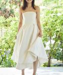 しっかりとボリュームのでるAラインドレス。スカート裾はミディアム丈になっていてアシンメトリー丈が可愛らしい印象に♪