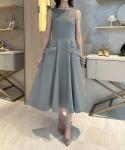 おさな心をくすぐる大きなポケットがアクセントのAラインドレス。光沢のある生地をたっぷりと使用したスカートが美しく、上品に着こなすことができます。ハイウェストな切り返しでスタイルアップも。カラーバリエーションは4種類あり、ご友人と色違いでお揃いコーデを楽しむのもおすすめです。