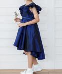 【キッズ】タフタロングテールミディアムドレスーネイビーー120サイズ