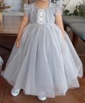 【キッズ】フリルスリーブチュールロングドレス-グレー-90サイズ