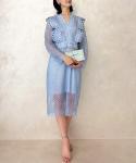 胸元に施されたドットチュールやフリルの袖がかわいらしく、デザイン性のある一着です。