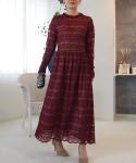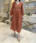 ―No,1:カラーフラワーレースロングスリーブミディアムドレス
