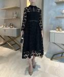 大ぶりな花柄レース×ブラックカラーで、甘さと大人っぽさが絶妙にマッチしたロングスリーブドレス。デコルテから袖にかけてのレースの透け感が大人可愛いですよね。さりげない首元の衿は、フォーマルな印象を演出してくれます。すっきり細身に見えるデザインですが、着心地はゆったり着られるAラインドレスです。