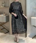 OGフロッキーフラワーハイネックパフミディアムドレス