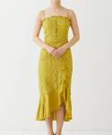 裾のフリルが印象的なイエロードレス。ストラップは調整が可能です!夏のリゾートウエディングにぴったりの1着です!